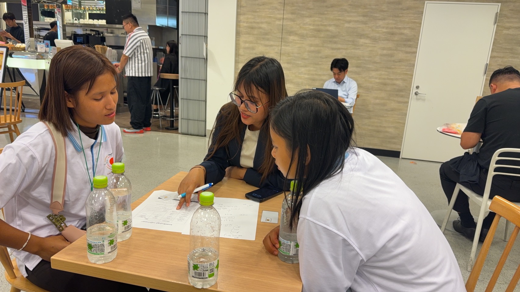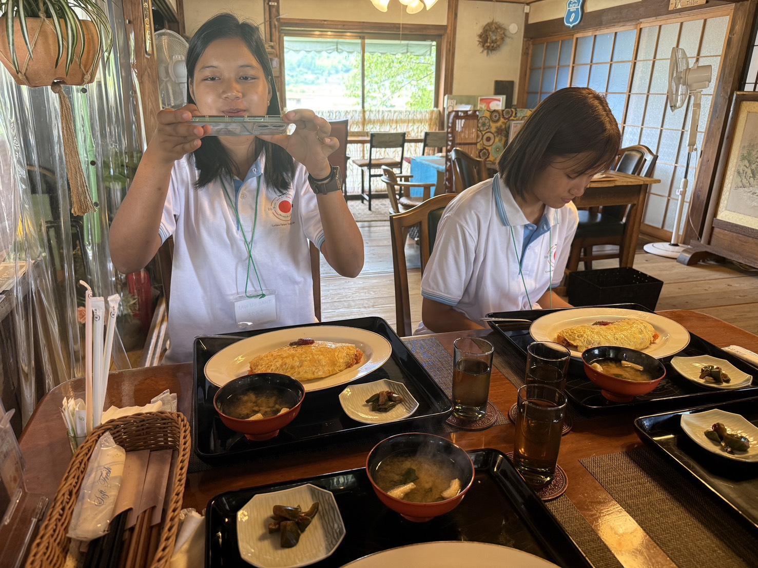 オムライスの写真をパシャリ。母国の家族や知り合いに近況報告かな。緊張も解けてきた表情で何よりです。頑張ってくださいね。