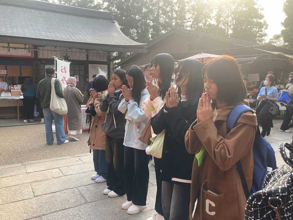 そのあとは日本の文化を研修しました。今回は伏見稲荷大社へ来ました。外国人スタッフの皆さん、真剣にお祈りされてました。